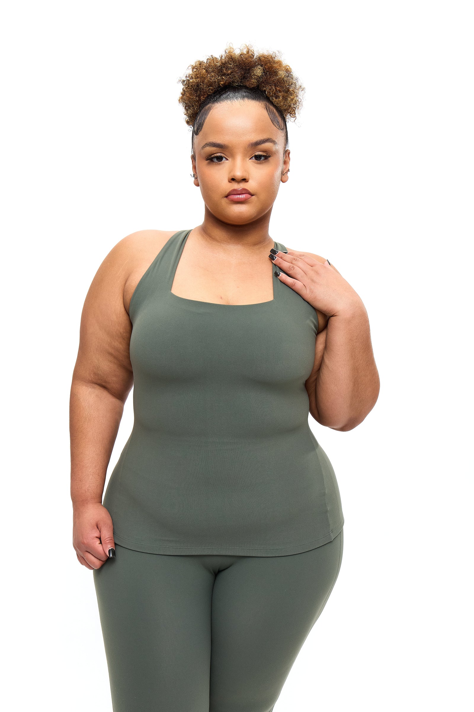 <div class="ewa-rteLine">Features:</div> <div class="ewa-rteLine">• Square neck</div> <div class="ewa-rteLine">• Strappy back</div> <div class="ewa-rteLine">• Removable bust pads</div> <div class="ewa-rteLine">Details:</div> <div class="ewa-rteLine">• Fabric: NuBre (Nylon/Spandex)</div> <div class="ewa-rteLine">• Medium Support Level</div> <div class="ewa-rteLine">• Full Length</div> <div class="ewa-rteLine"><br></div> <div class="ewa-rteLine">The Revolution Tank is full length with a flattering square neckline and a medium level of support to highlight your best features. The strappy back has a three-strap criss-crossed design that is held together with a metal ring. This tank is made with our signature NuBre fabric for a soft, second skin feel with high stretch retention.</div>